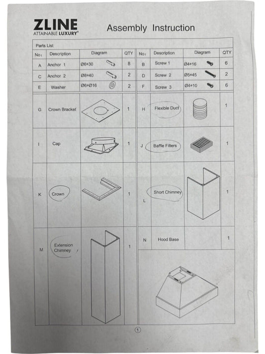 ZLINE Wall Mount Range Hood in Stainless Steel (KB-36) -USED-