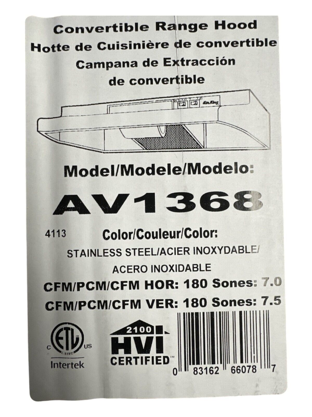 Air King AV Series 36" Under Cabinet Convertible Range Hood with Light -READ-