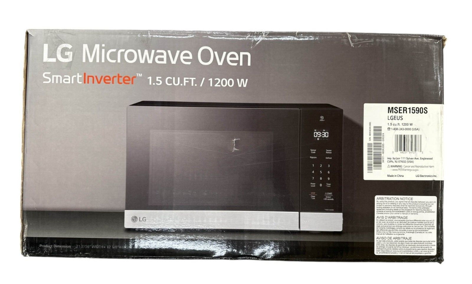 LG Microwaves MSER1590S 1.5 Cf Smart Inverter Easy Clean Coating