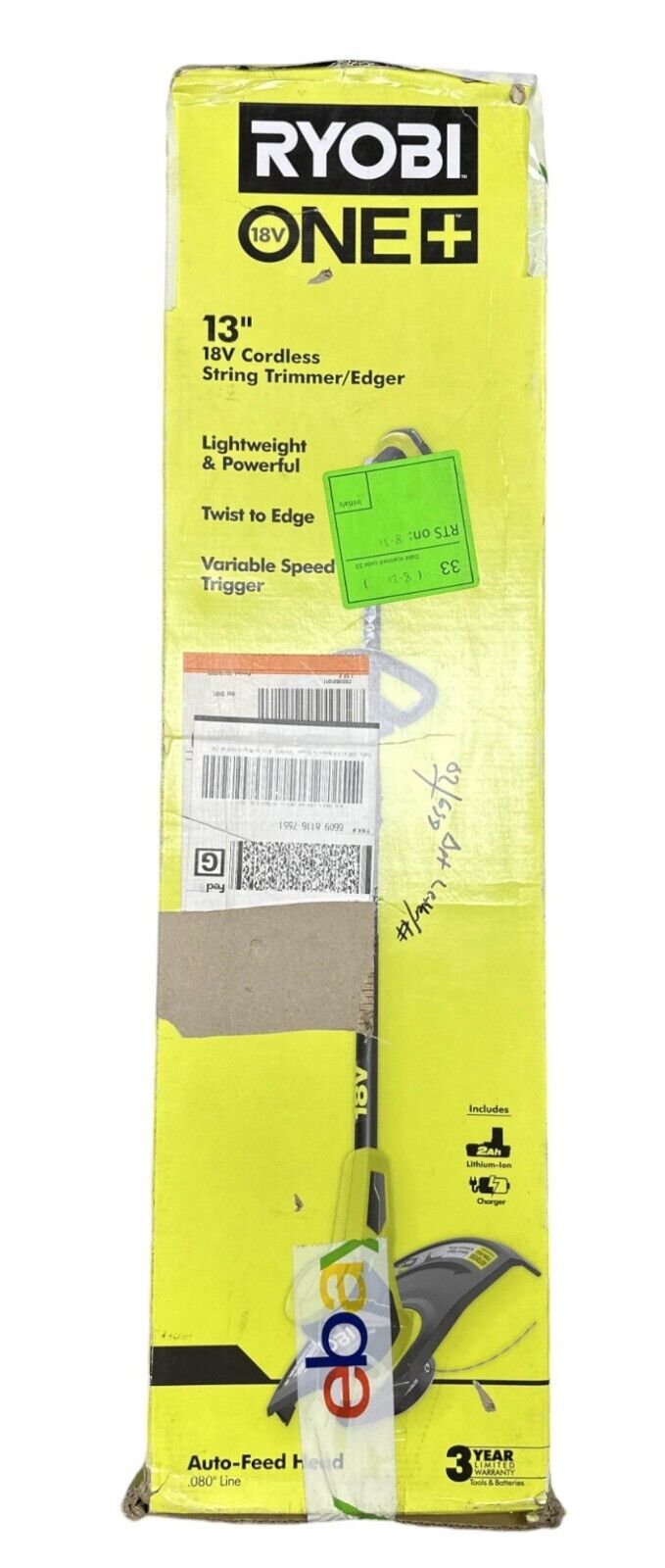 This cordless string trimmer is made by Ryobi, a trusted brand in the industry. The tool is powered by batteries, which are not included in the package. The features of this trimmer include a compact design, lightweight construction, and a powerful motor. It is perfect for tasks like trimming small trees, hedges, and bushes.